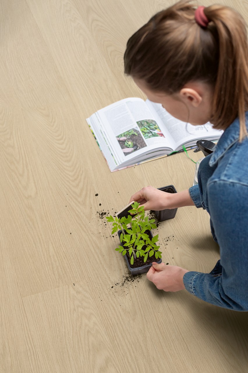 Quick-Step Alpha vinils ir ideāli piemērotas ieklāšanai uz grīdas ar nelieliem nelīdzenumiem (līdz 4 mm platumā un 1 mm dziļumā) un lielām platībām (nav platuma un garuma ierobežojuma, tāpēc jums nevajadzēs pārejas profilus). Grīdas segums nemainīs krāsu un neizbalēs saules staros.